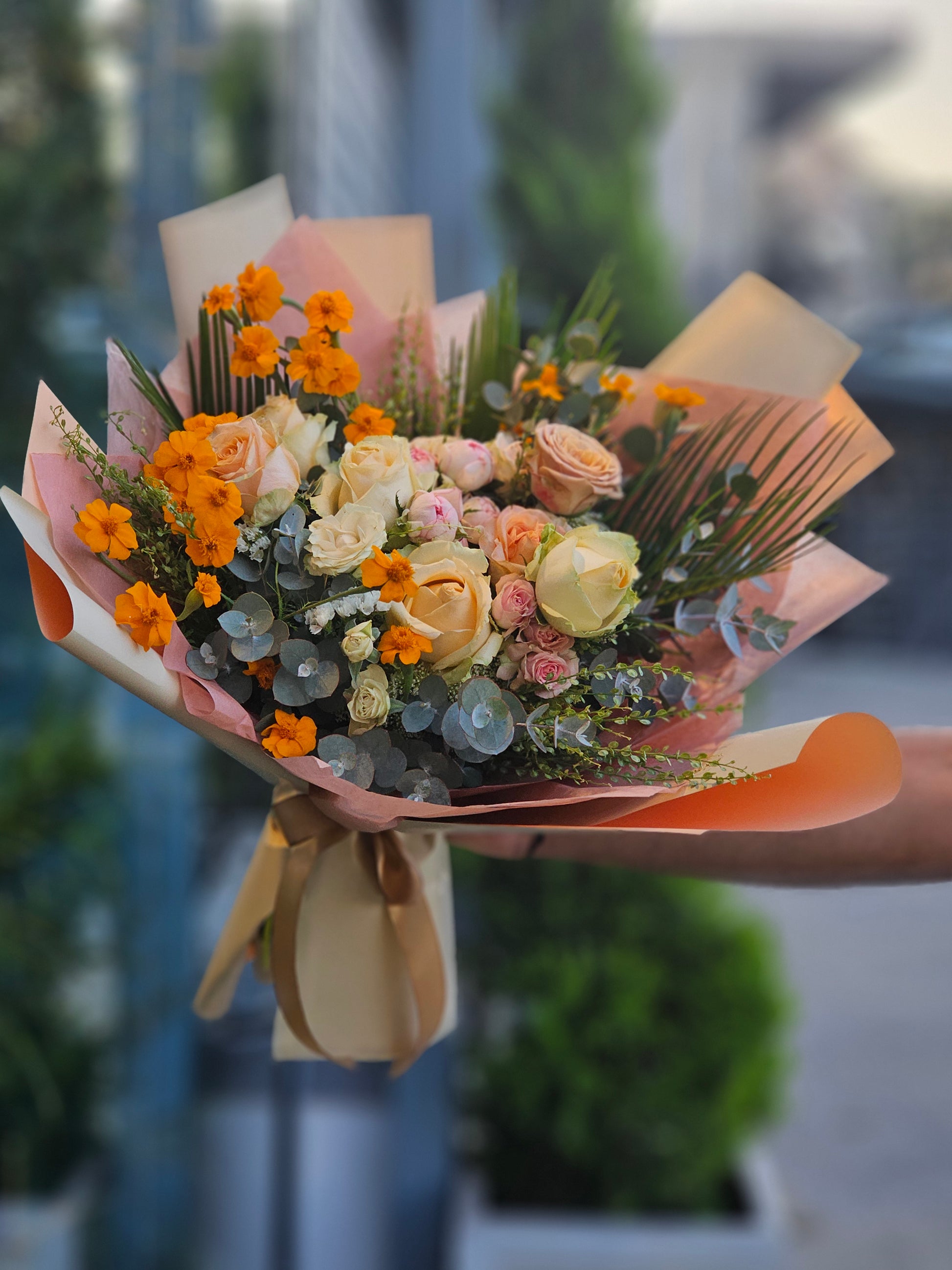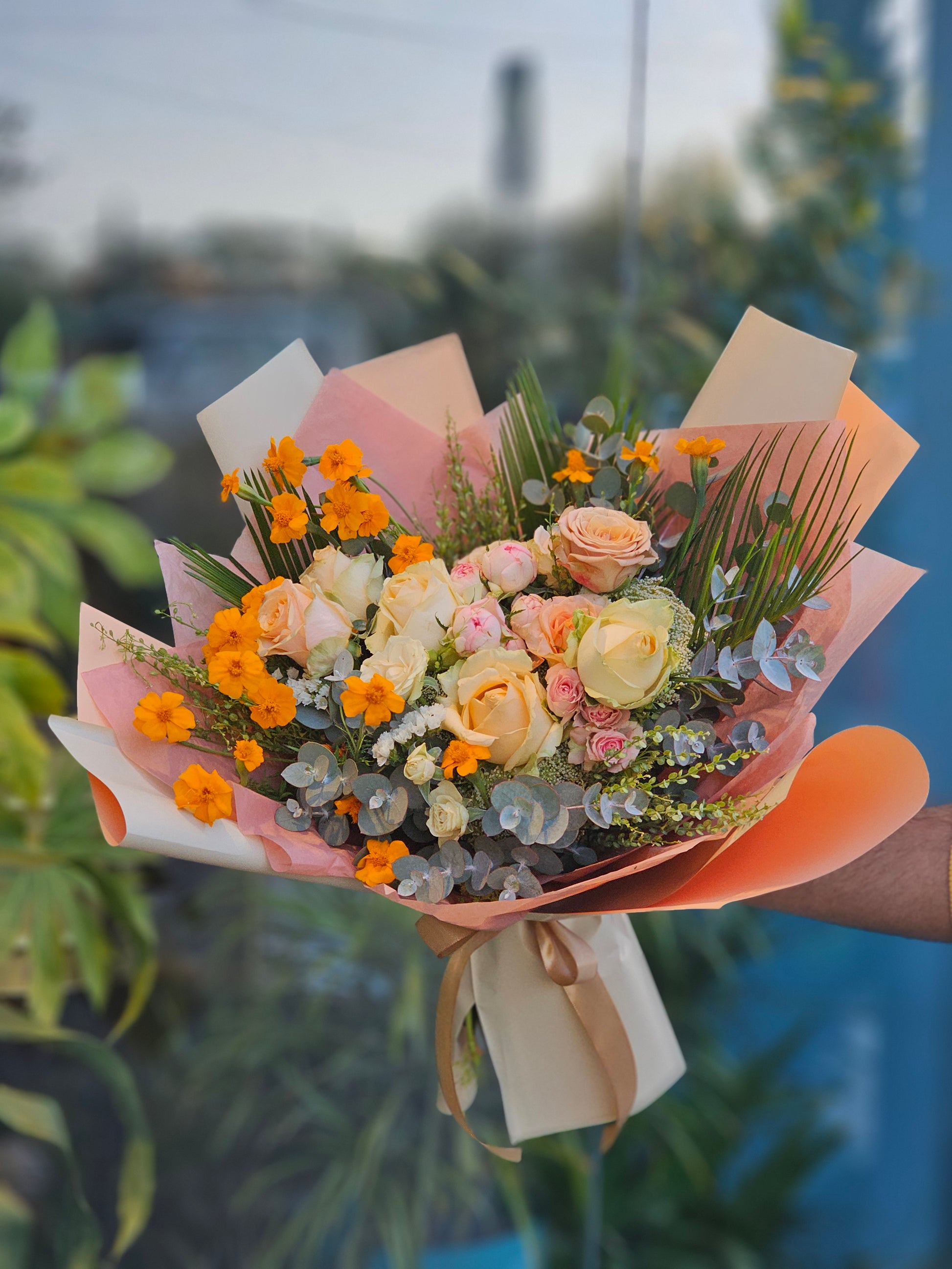 A special peach colorful Oronfleh Concept bouquet expressing million reasons for strength.