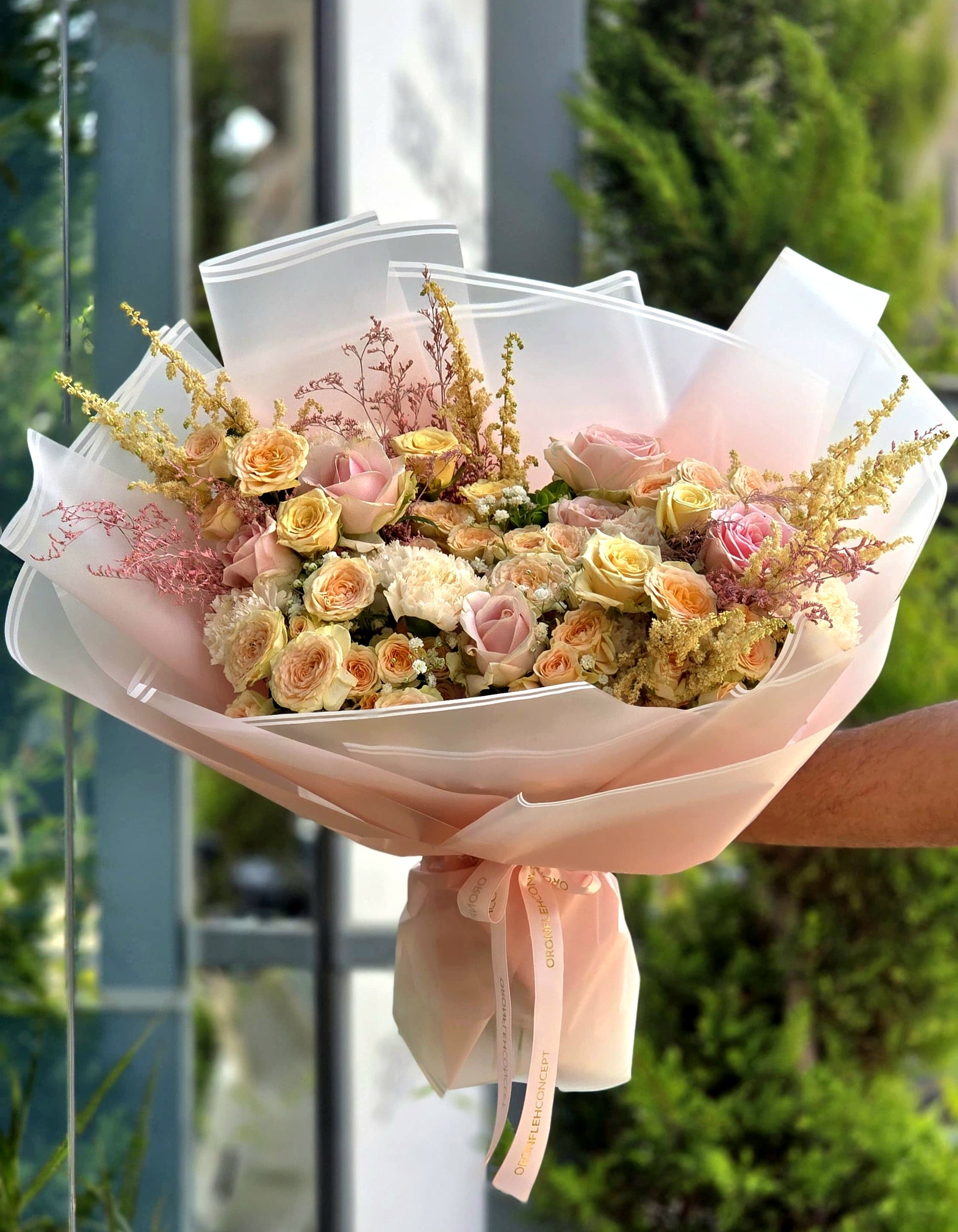 To ensure your order is delivered on time, we might need to substitute some of the flowers used for this arrangement (not more than 15% of them). However, it will still look very close to the requested product and will have the same size & flower color.