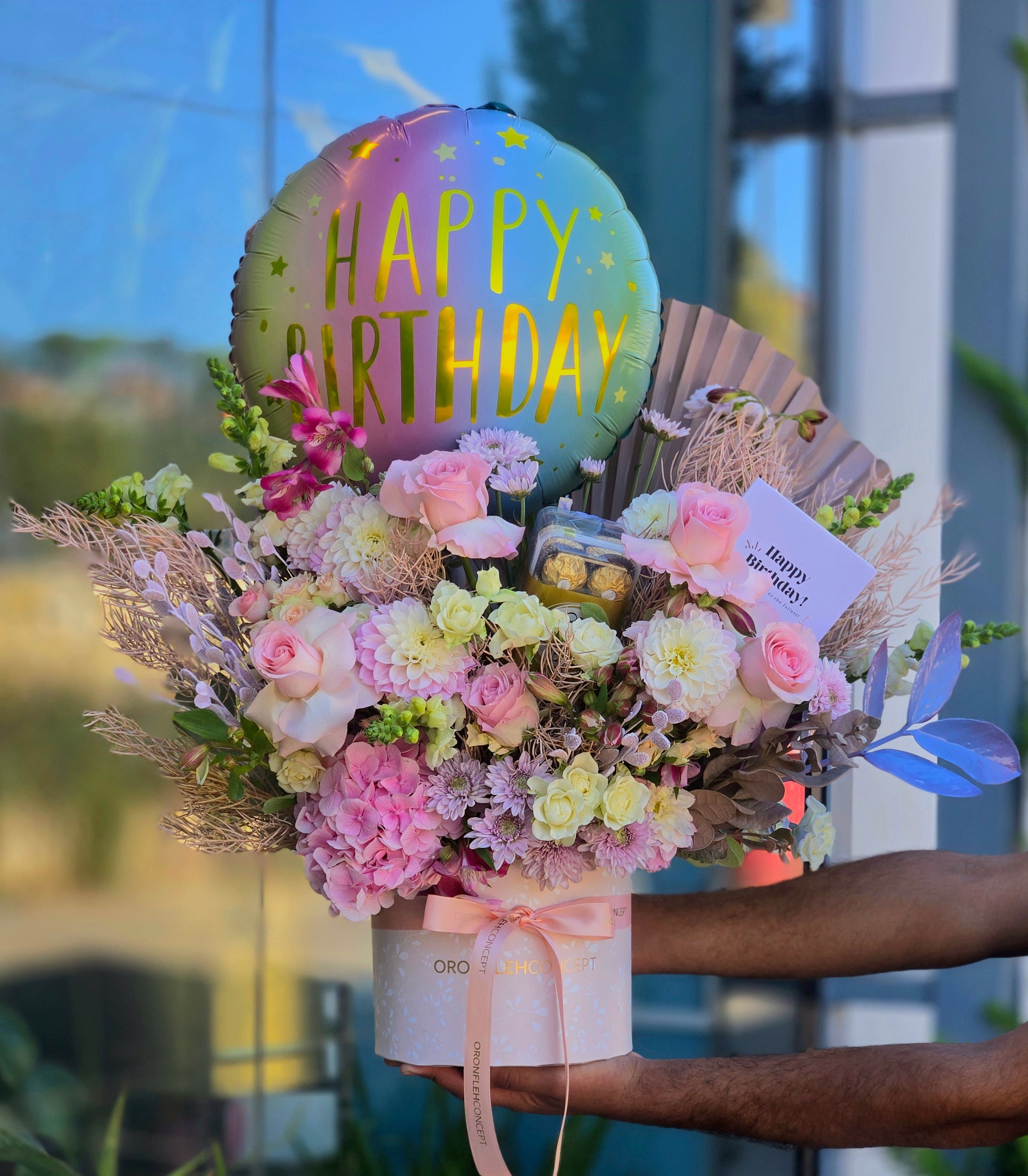 ● "Please note that any balloons, Chocolates & Accessories that might be featured in the picture are not included in the bouquet price — if you’d like to add a balloon, Chocolates or Accessories, kindly select it as an additional item when placing your order."