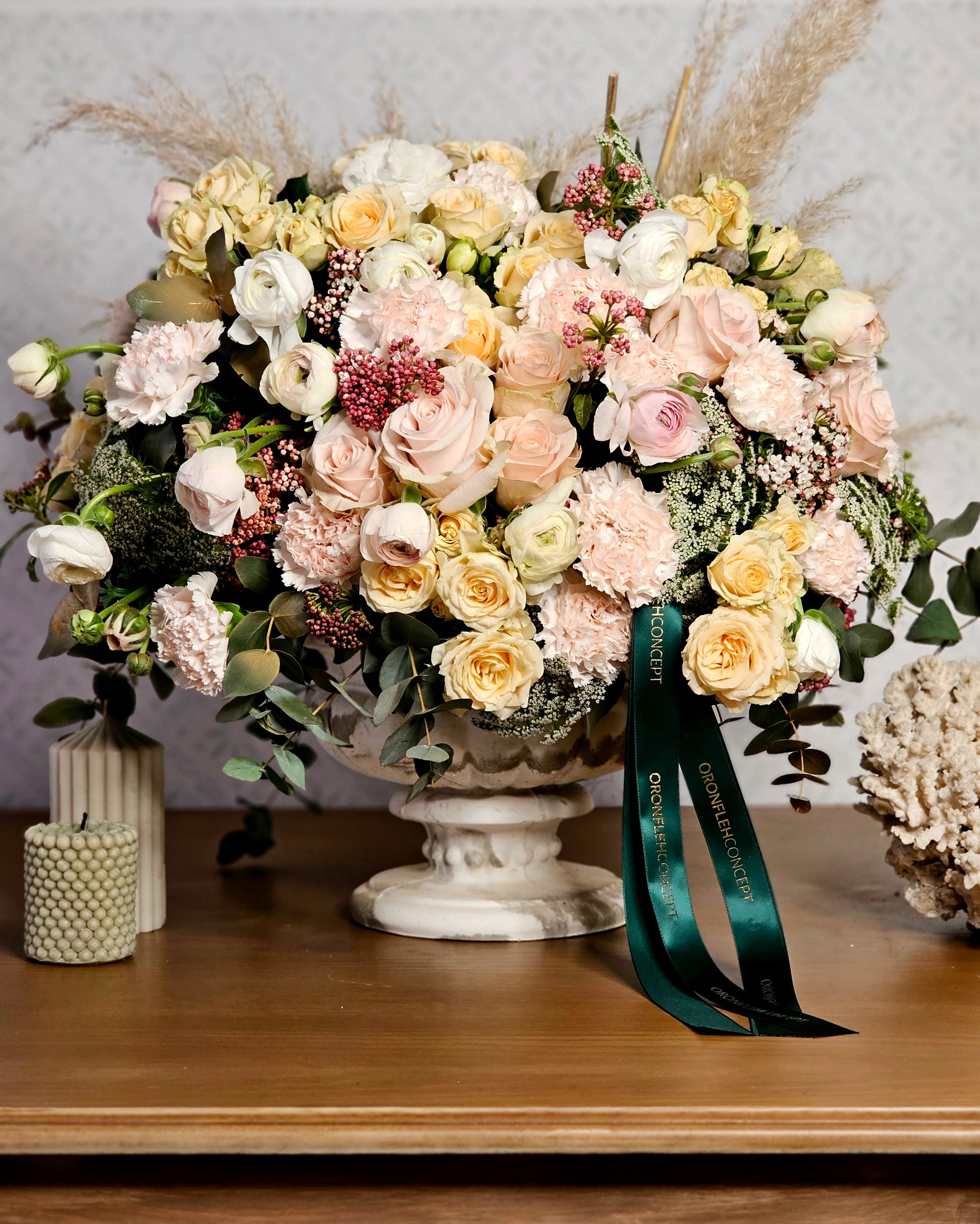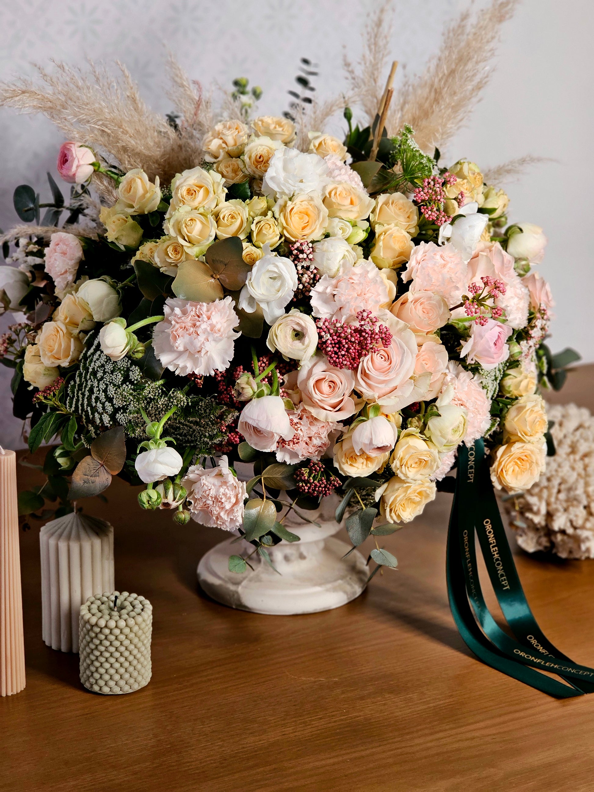 To ensure your order is delivered on time, we might need to substitute some of the flowers used for this arrangement (not more than 15% of them). However, it will still look very close to the requested product and will have the same size & flower color.