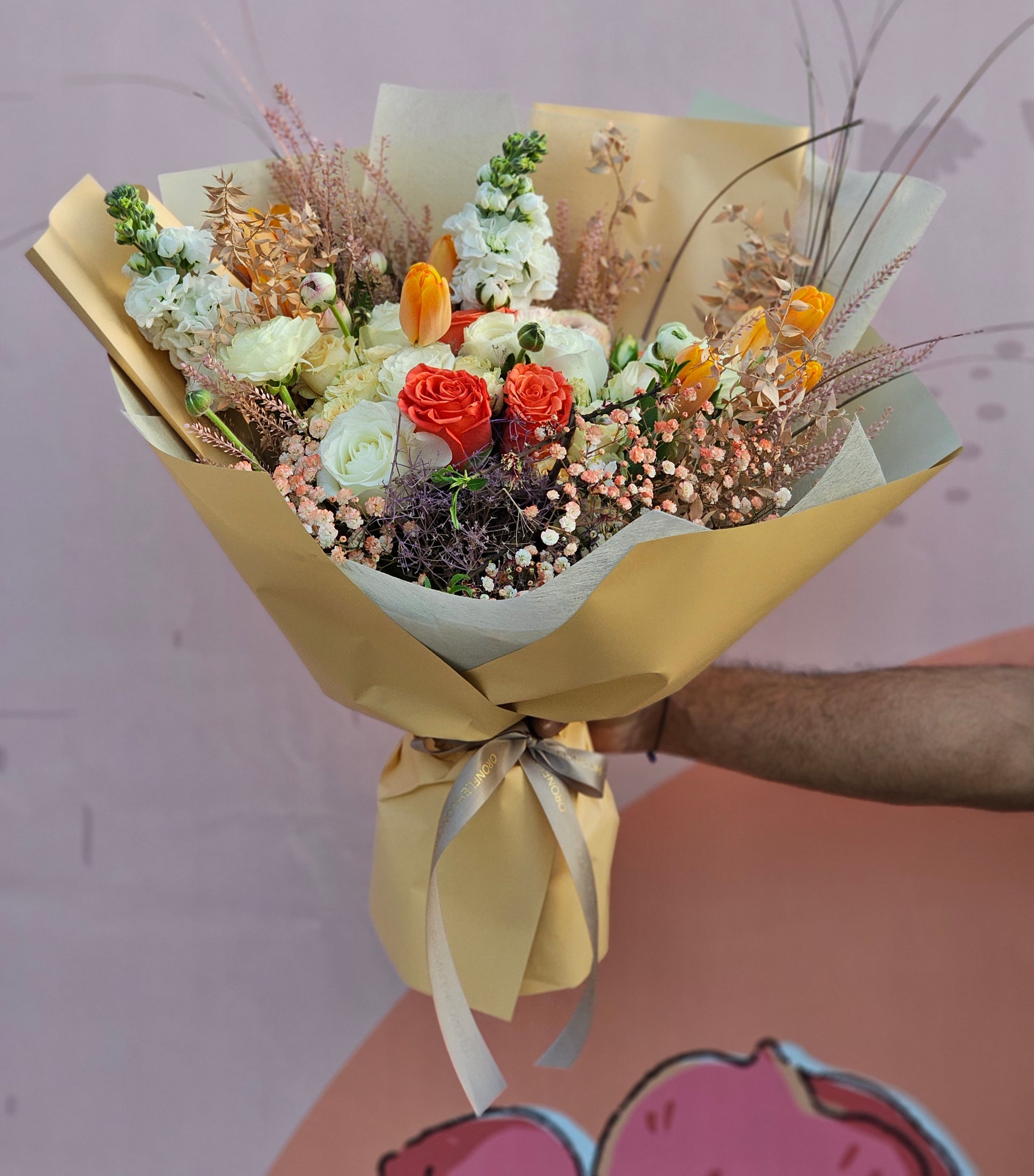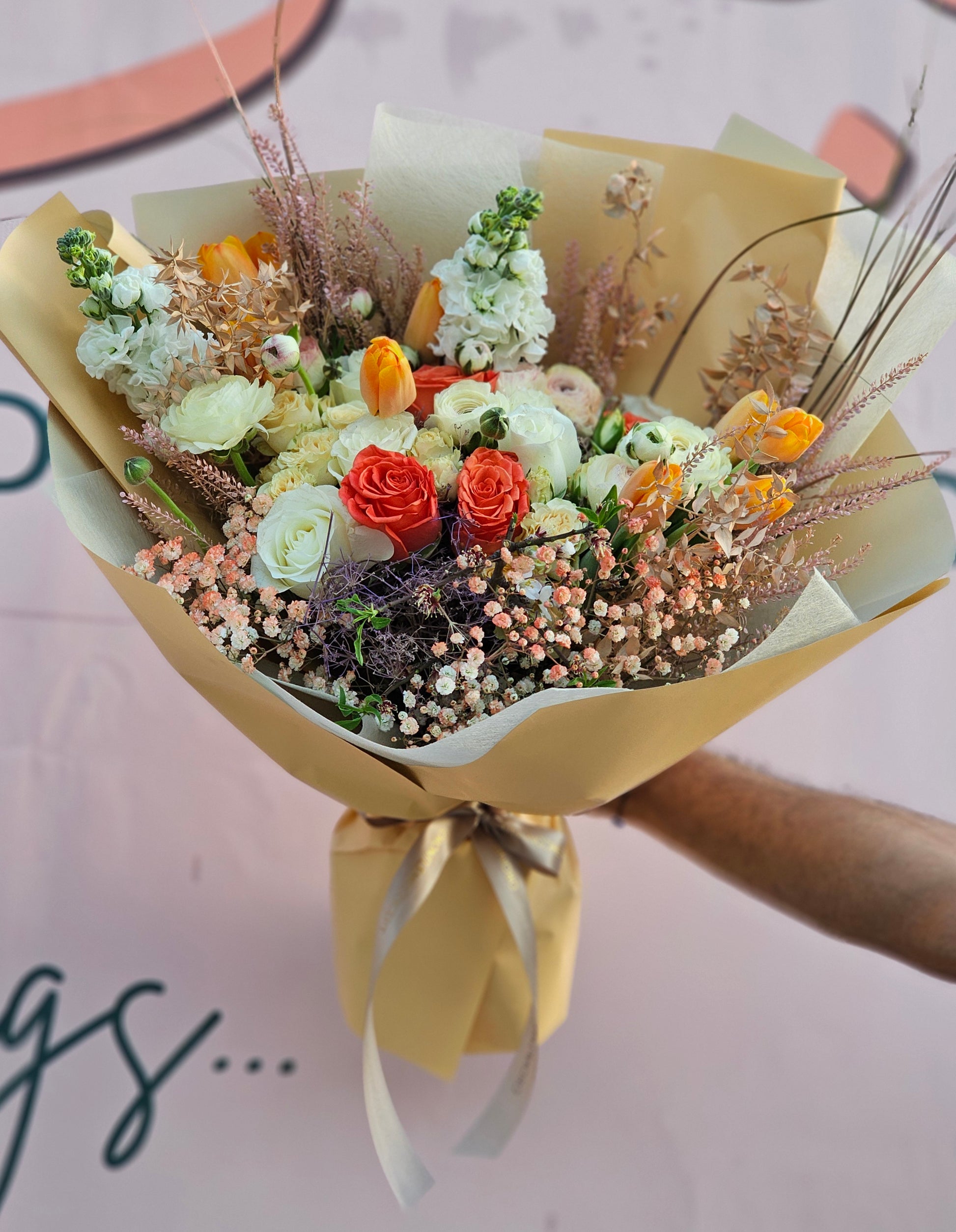 To ensure your order is delivered on time, we might need to substitute some of the flowers used for this arrangement (not more than 15% of them). However, it will still look very close to the requested product and will have the same size & flower color.