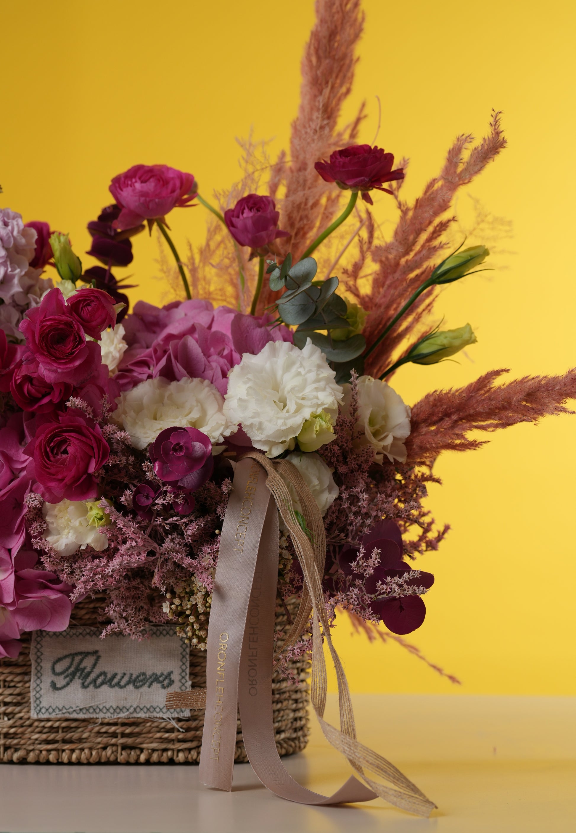 Nestled in a rustic woven wicker basket, this design is elevated with whimsical pampas grass and airy lavender-hued fillers, creating a beautiful sense of height and movement. It’s the perfect blend of farmhouse warmth and modern floral artistry for the mom who loves a natural, wild-inspired look.