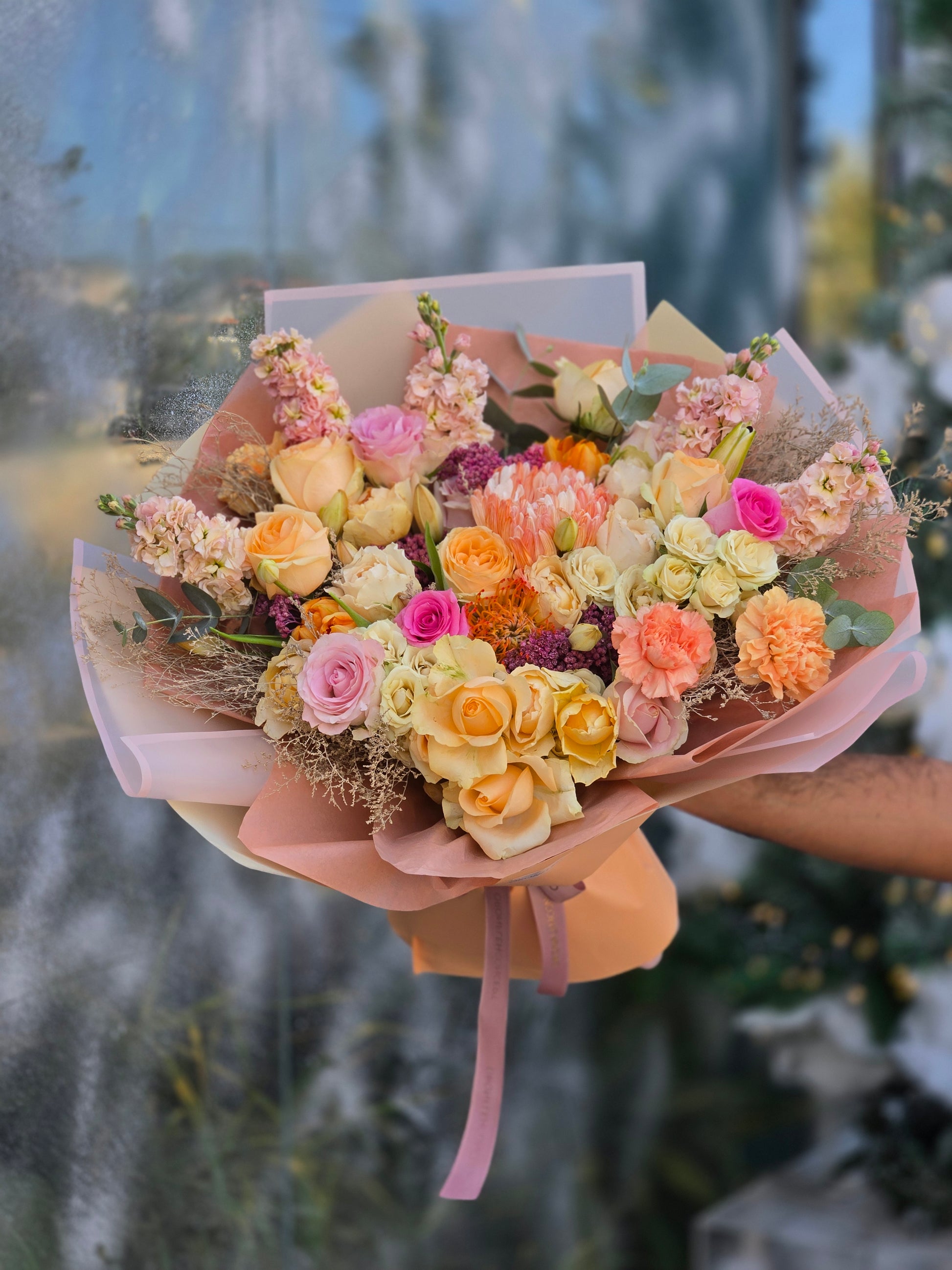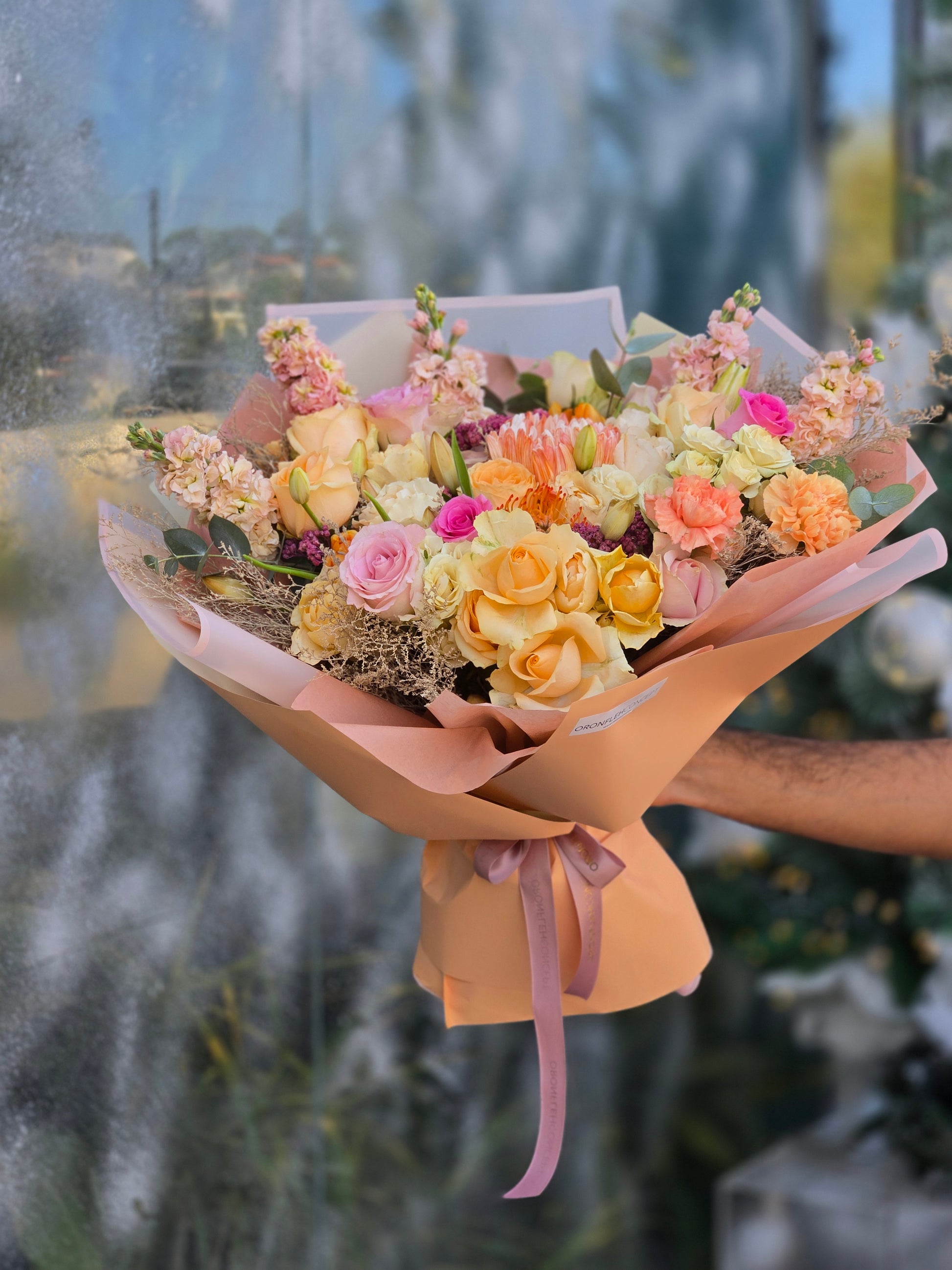 ● "Please note that any balloons, Chocolates & Accessories that might be featured in the picture are not included in the bouquet price — if you’d like to add a balloon, Chocolates or Accessories, kindly select it as an additional item when placing your order."